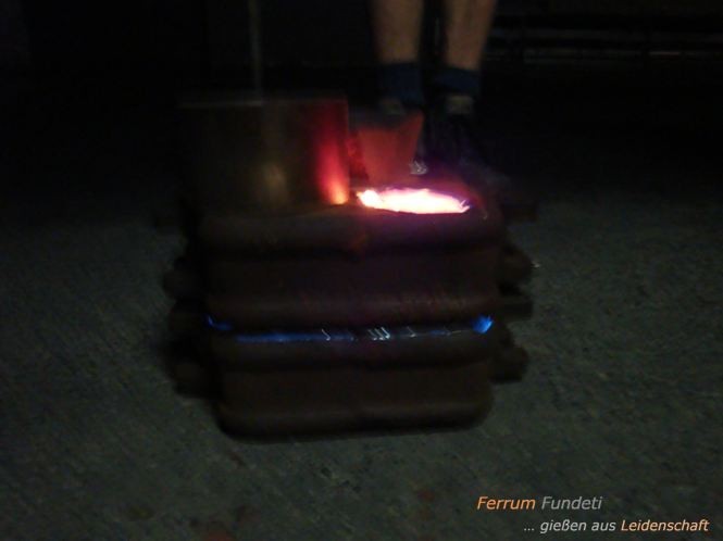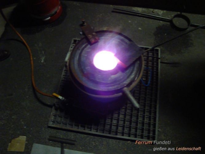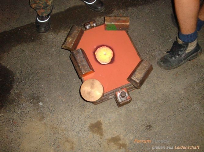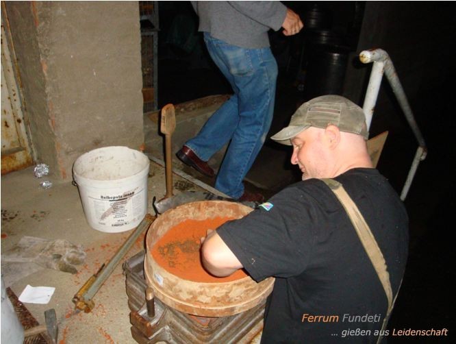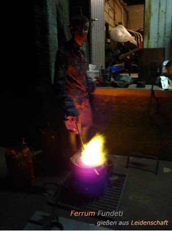 Am 17 September 2011 fand Abends ein Bronzegießen im Hof des Weingutes Apfelbacher in Dettelbach statt.